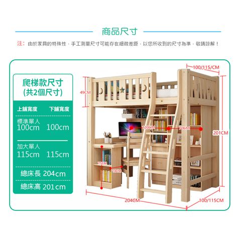 客訂 - ★☆升級版(上漆)☆★上下舖同寬115床型 階梯可拆式款