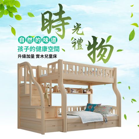 客訂(預付訂金) - **訂製**不可拆上下同寬床型 階梯可拆式款【原木】